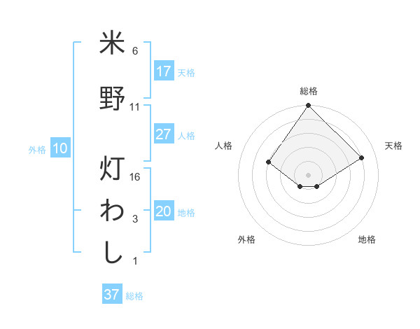 米野 灯わしさんを姓名の画数から五運を鑑定