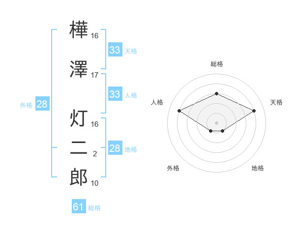 樺澤 灯二郎さんを姓名の画数から五運を鑑定