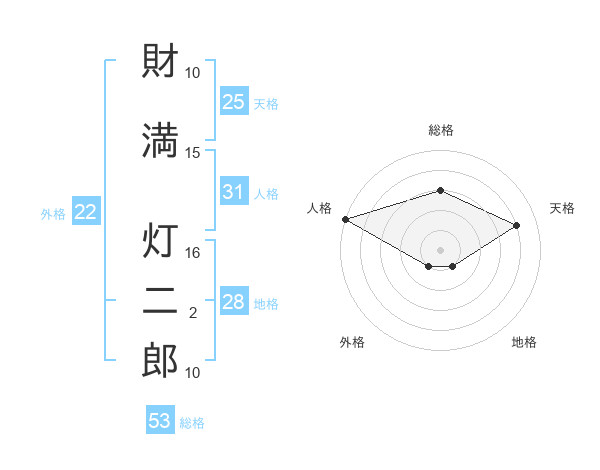 財満 灯二郎さんの総格は53画の3点!