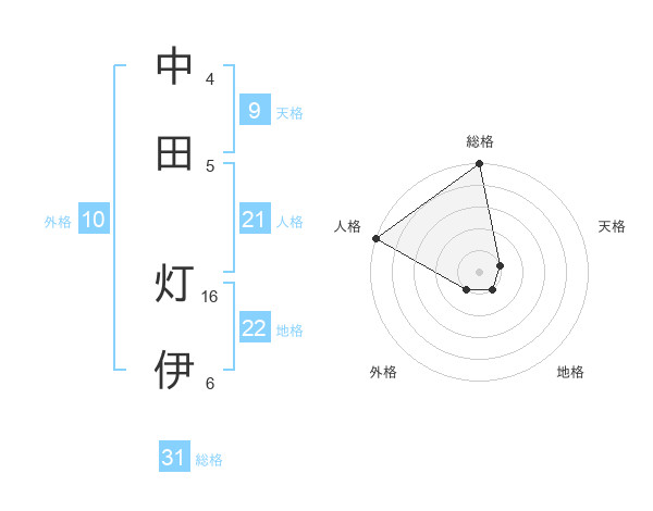 中田 灯伊さんを姓名の画数から五運を鑑定