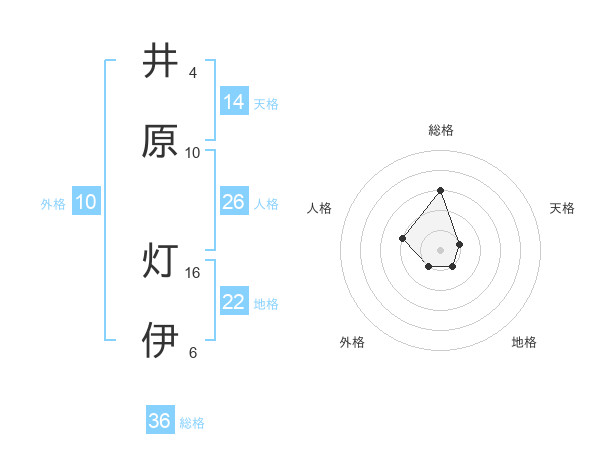 井原 灯伊さんを姓名の画数から五運を鑑定