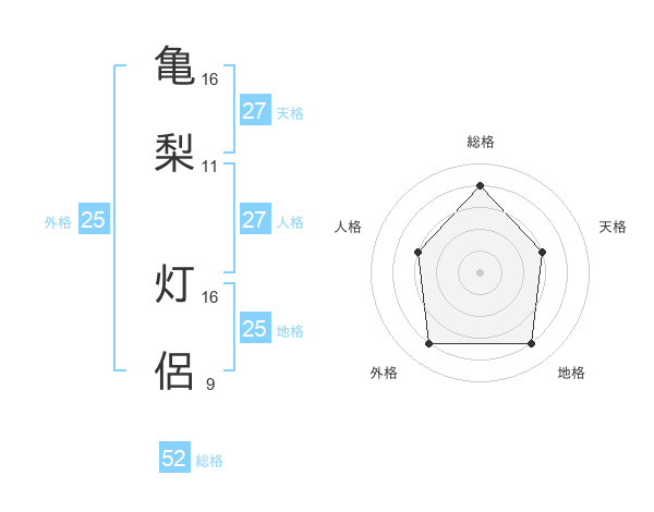 亀梨 灯侶さんを姓名の画数から五運を鑑定