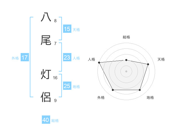 八尾 灯侶さんの総格は40画の2点!