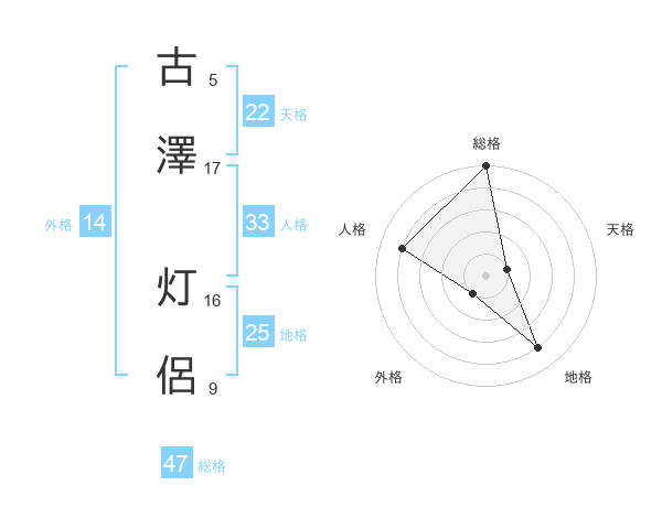 古澤 灯侶さんの総格は47画の5点!