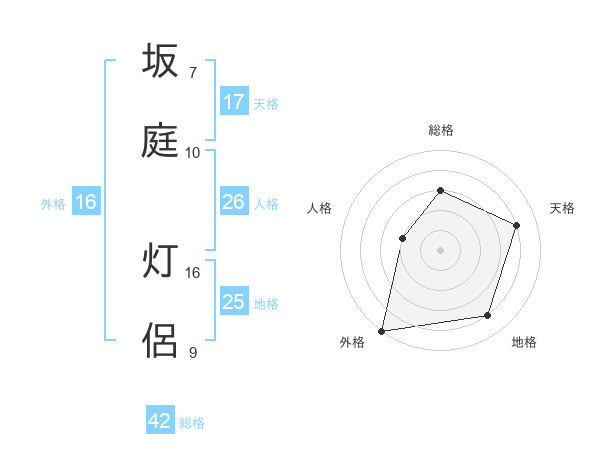 坂庭 灯侶さんを姓名の画数から五運を鑑定