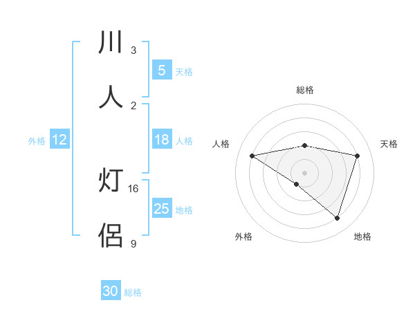 川人 灯侶さんの総格は30画の2点!
