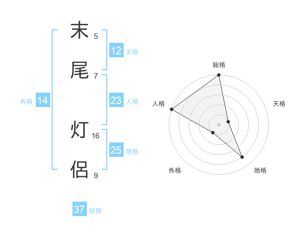 末尾 灯侶さんの総格は37画の5点!