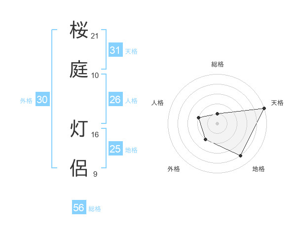 桜庭 灯侶さんの天格は31画の5点!
