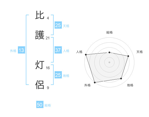 比護 灯侶さんの総格は50画の2点!