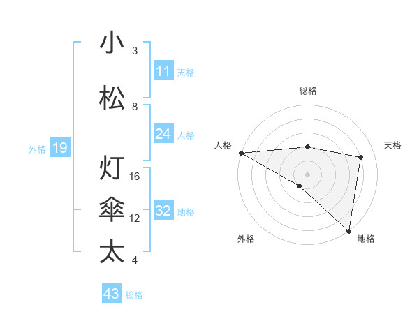 小松 灯傘太さんを姓名の画数から五運を鑑定