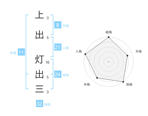 上出 灯出三さんを姓名の画数から五運を鑑定