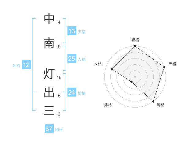 中南 灯出三さんを姓名の画数から五運を鑑定