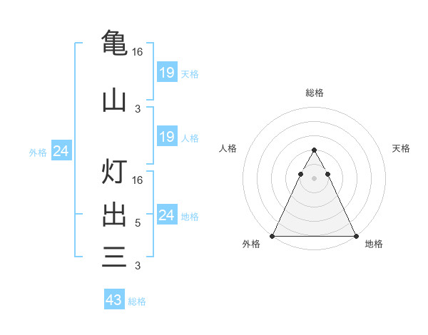 亀山 灯出三さんを姓名の画数から五運を鑑定