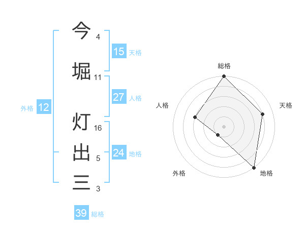 今堀 灯出三さんの総格は39画の5点!