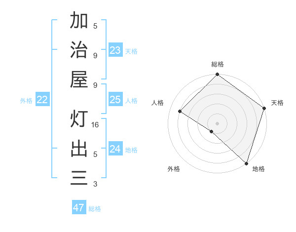 加治屋 灯出三さんの総格は47画の5点!