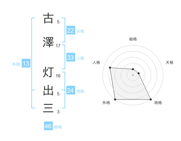 古澤 灯出三さんを姓名の画数から五運を鑑定