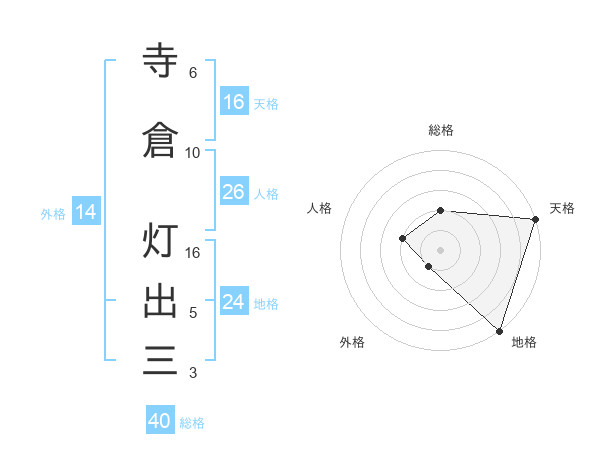 寺倉 灯出三さんの総格は40画の2点!