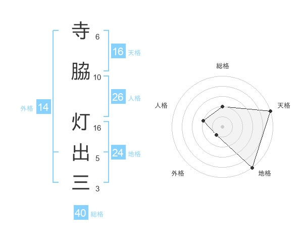 寺脇 灯出三さんを姓名の画数から五運を鑑定