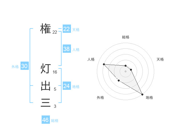 権 灯出三さんの総格は46画の1点!