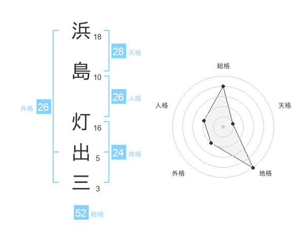 浜島 灯出三さんを姓名の画数から五運を鑑定