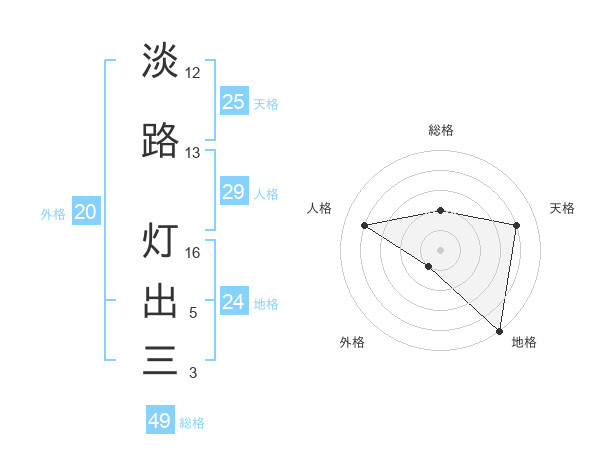 淡路 灯出三さんの総格は49画の2点!