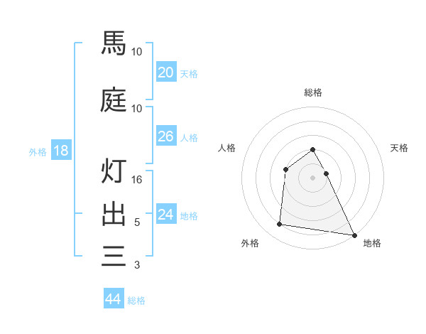 馬庭 灯出三さんを姓名の画数から五運を鑑定
