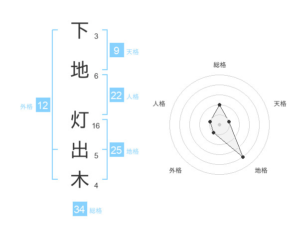 下地 灯出木さんを姓名の画数から五運を鑑定