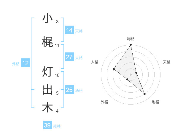 小梶 灯出木さんを姓名の画数から五運を鑑定