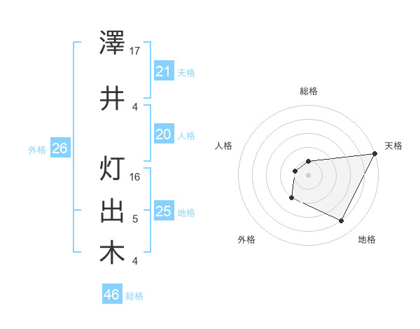 澤井 灯出木さんを姓名の画数から五運を鑑定