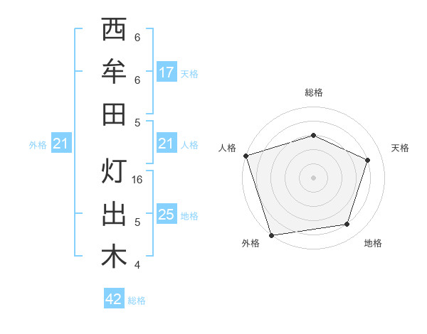 西牟田 灯出木さんを姓名の画数から五運を鑑定