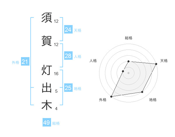 須賀 灯出木さんを姓名の画数から五運を鑑定
