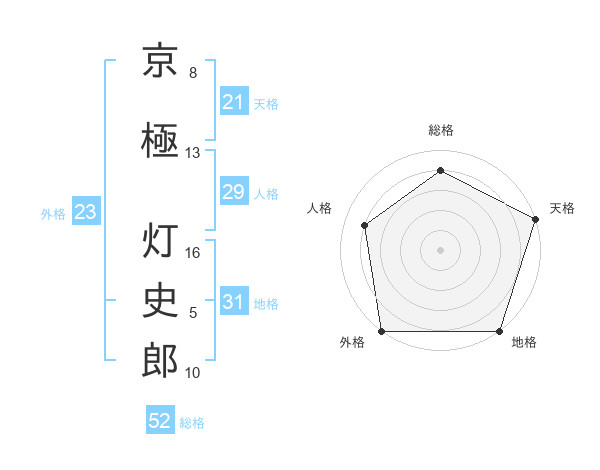 京極 灯史郎さんの天格は21画の5点!