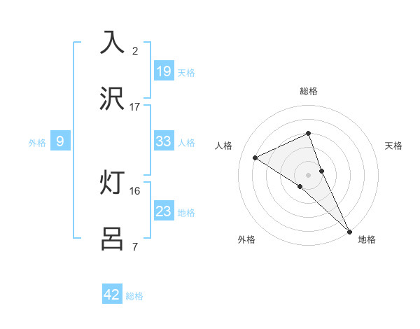 入沢 灯呂さんの総格は42画の3点!
