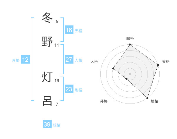 冬野 灯呂さんを姓名の画数から五運を鑑定