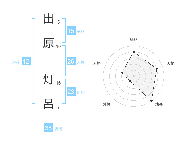出原 灯呂さんの総格は38画の4点!