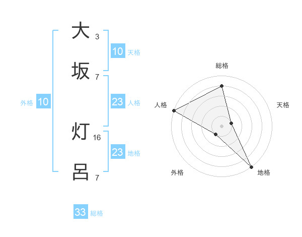大坂 灯呂さんの総格は33画の4点!