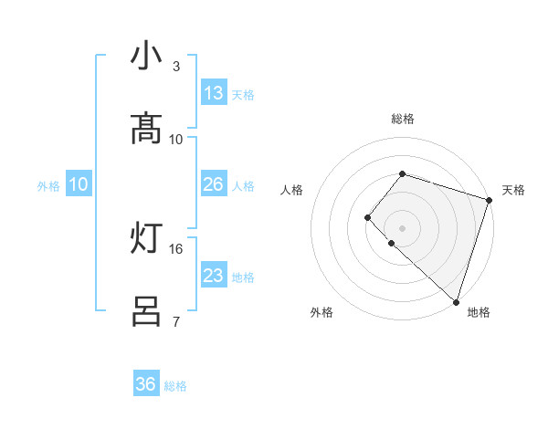小髙 灯呂さんを姓名の画数から五運を鑑定
