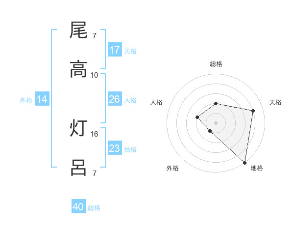 尾高 灯呂さんを姓名の画数から五運を鑑定