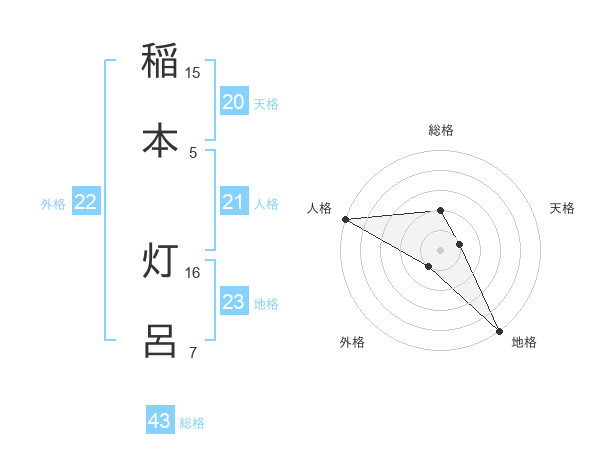 稲本 灯呂さんを姓名の画数から五運を鑑定