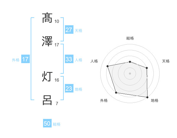 髙澤 灯呂さんを姓名の画数から五運を鑑定
