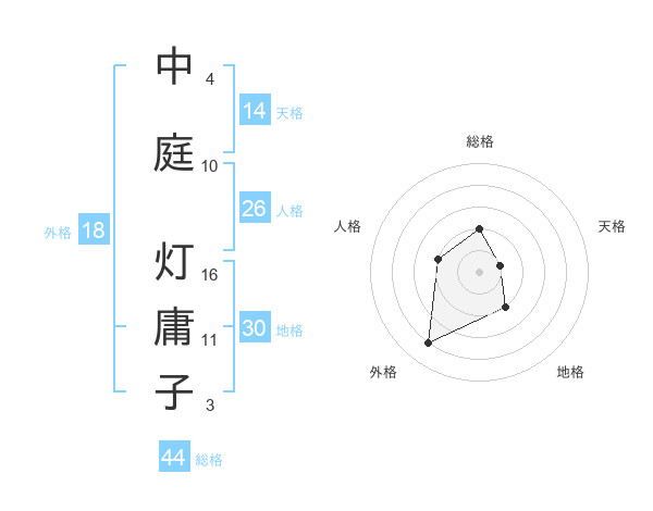中庭 灯庸子さんを姓名の画数から五運を鑑定