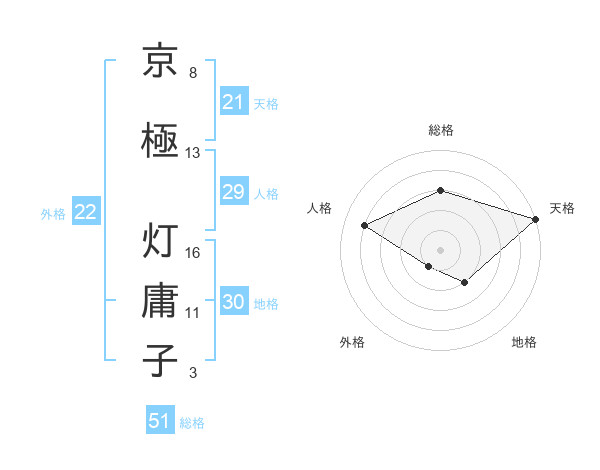 京極 灯庸子さんを姓名の画数から五運を鑑定