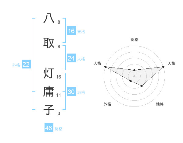 八取 灯庸子さんの天格は16画の5点!