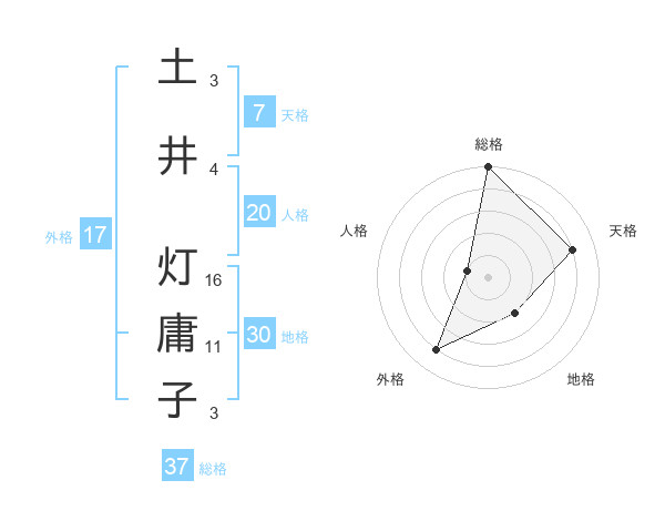 土井 灯庸子さんを姓名の画数から五運を鑑定