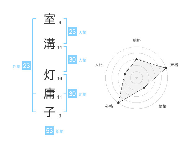 室溝 灯庸子さんを姓名の画数から五運を鑑定