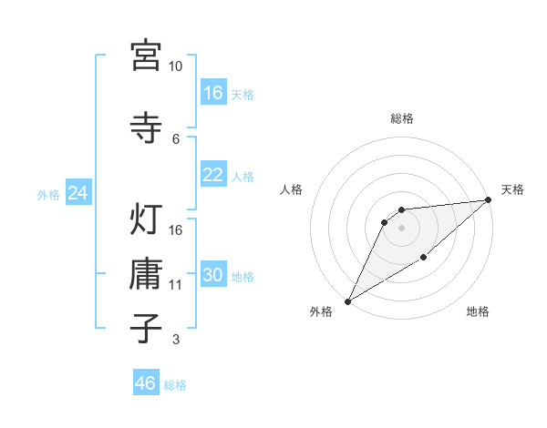 宮寺 灯庸子さんの天格は16画の5点!