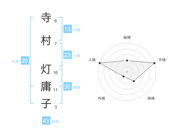 寺村 灯庸子さんの天格は13画の5点!
