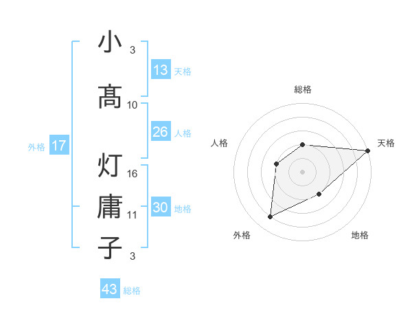 小髙 灯庸子さんを姓名の画数から五運を鑑定