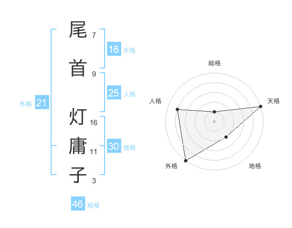尾首 灯庸子さんを姓名の画数から五運を鑑定