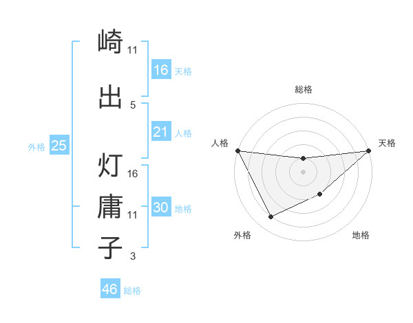 崎出 灯庸子さんの天格は16画の5点!